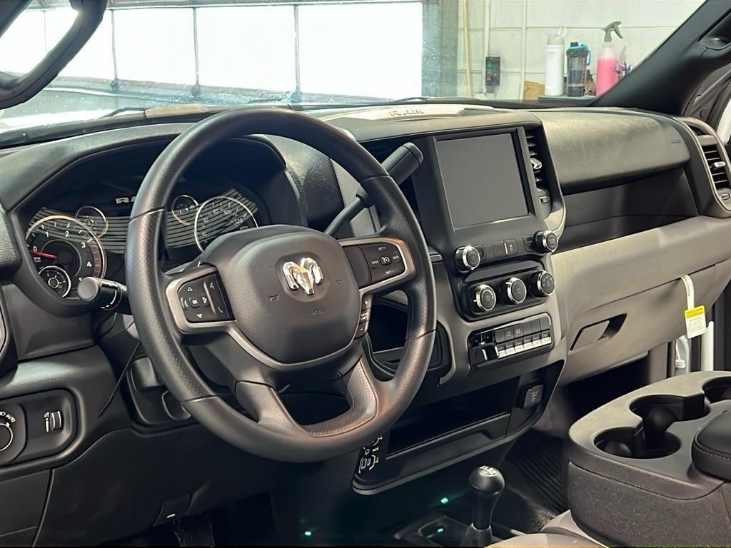 Cold Weather Group: Engine Block Heater; MOPAR Winter Front Grille Cover. Chrome Appearance Group: Bright Wheel Skins; Chrome Grille Surround; Matte Black Mesh Grille with Chrome; Center Hub; 17" X 6.0" Steel Chrome Clad Wheels; Chrome Headlamp Bezels; Bright Front Bumper. Max Tow Package: 12.0" Dual Wheel Rear Axle; Add 4.10 Axle Ratio. Tradesman Level 1 Equipment Group: Speed Sensitive Power Locks; Mirror Power Heat Fold Telescope Black; Exterior Mirrors with Supplemental Signals; Upgraded Door Trim Panel; Exterior Mirrors Courtesy Lamps; Manual Folding Exterior Mirrors; Exterior Mirrors with Heating Element; Front 1-Touch Down Power Windows; Mirror Running Lights; Manuarl Telescoping Mirrors; Power Adjust Mirrors; Black Exterior Mirrors; Overhead Console; Remote Keyless Entry; Power-Adjustable Convex Aux Mirrors; Overhead Cupholder Lamp. Quick Order Package 2YA Tradesman: Rear Dome Lamp; Black Exterior Truck Badging; Black Key Fob; Matte Black Grille Surround; Halogen Quad Headlamps; Door Sill Scuff Pads; Glove Box; Map/courtesy Lamp. Electrical Accessory Group: Trailer Brake Control; Voltage Monitoring Auto Idle Up System. Dual Rear Wheels: Bright Wheel Skins; Center Hub; 6000# Front Axle with Hub Extension; Nexen Brand Tires; 11.50" Dual Wheels Rear Axle; 14. 000 lbs GVWR. Uconnect 5 with 8.4" Display Radio. 52 and 22 Gallon Dual Fuel Tanks. Trailer Brake Control. Full Size Spare Tire. Cloth 40/20/40 Bench Seat. LT235/80R17E OWL On/off Road Tires. SiriusXM Satellite Radio. Voltage Monitoring Auto Idle Up System. Add 4.10 Axle Ratio. Tow Hooks. **Equipment listed is based on original vehicle build and subject to change. Please confirm the accuracy of the included equipment by calling the dealer prior to purchase.**