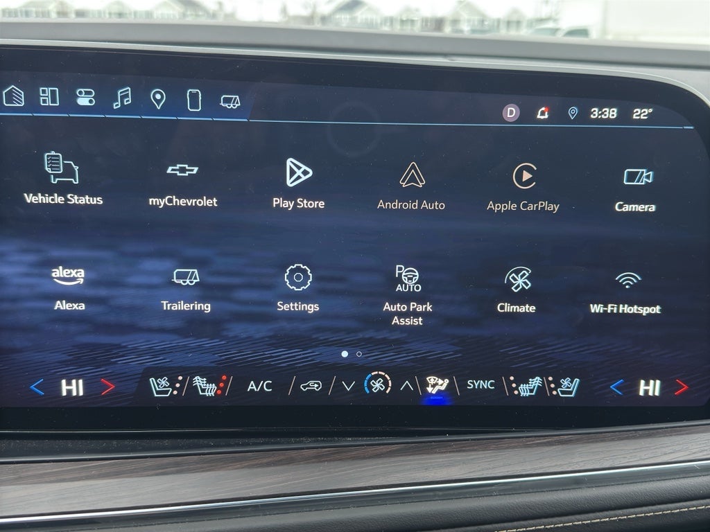 Preferred Equipment Group 1LZ: 4-Way Power Front Passenger Lumbar Seat Adjuster; Bright Front and Rear Door Sill Plates; Memory Settings; 3rd Row 60/40 Power-Folding Split-Bench; Rear Power Liftgate; Chrome Door Handles with Body-Color Strip; LED Tail Lamps; Front LED Fog Lamps; Heated Steering Wheel; Heated Driver and Front Passenger Seats; Universal Home Remote; Heated 2nd Row Outboard Seats; Power-Sliding Center Floor Console; Chrome Mirror Caps; Dual Exhaust System; Perforated Heated and Ventilated Seats; Power Tilt and Telescopic Steering Column; LED Headlamps with LED Daytime Running Lamps; Wireless Phone Charging; 8-Way Power Front Passenger Seat Adjuster; Bose 10-Speaker Surround with CenterPoint; 4-Way Power Driver Lumbar Seat Adjuster; Magnetic Ride Control Suspension; Auto-Dimming Inside Rearview Mirror; Power Release 2nd Row Bucket Seats; Heated Power-Adjustable Outside Mirrors. 22" X 9" Polished Aluminum Wheels. Iridescent