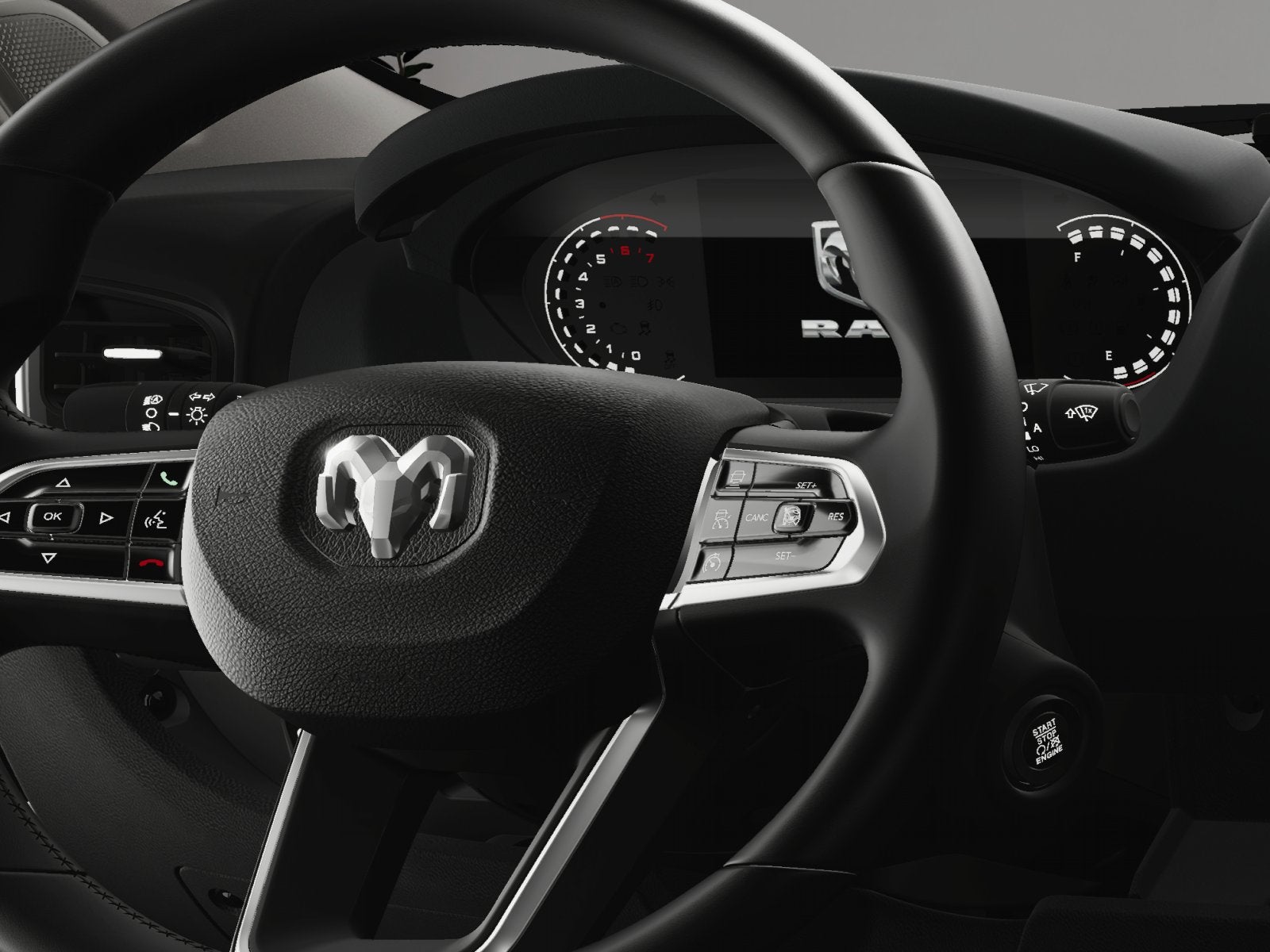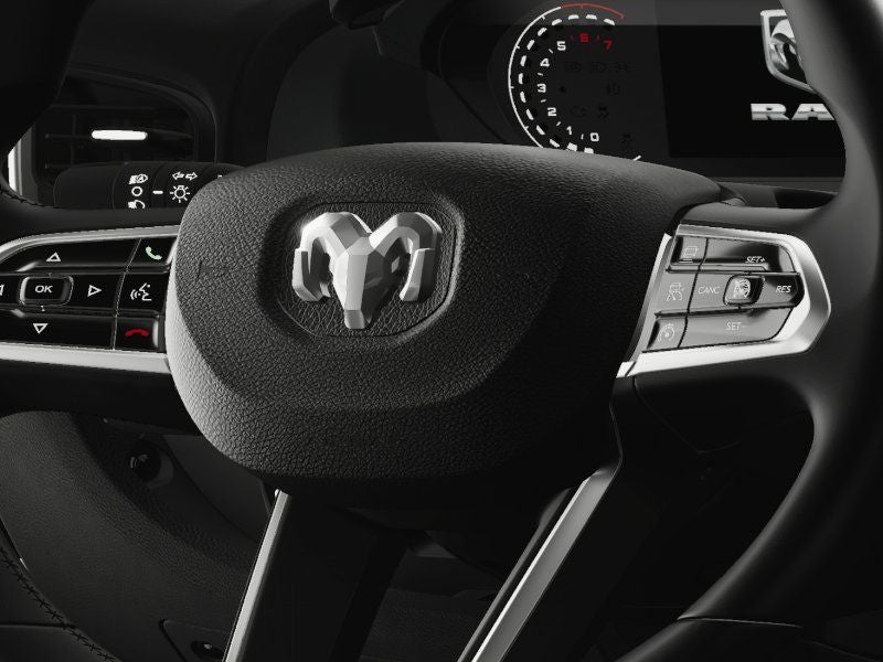 Advanced Safety Group: Adaptive Cruise Control with Stop and Go; Active Driving Assist System; Leather Wrapped Steering Wheel; P&P Park and Unpark Assist System; Surround View Camera System; Blind Spot and Cross Path Detection; Cluster 7" TFT Color Display. Black Appearance Package: Black Exterior Truck Badging; RAM Grille Badge - Black; 16" X 6.0" Painted Black Aluminum Wheels. Quick Order Package 22H SLT+: Google Android Auto; Blind Spot and Cross Path Detection; Power Folding/heated Mirrors; Manual 2-Way Driver Lumbar Adjust; Integrated Voice Command with Bluetooth®; Manual 2-Way Passenger Lumbar Adjust; Instrument Panel Bright Bezels; Driver Seat Armrest; 6-Way Manual Adjust Front Passenger Seat; Front LED Fog Lamps; Full Size Spare Tire; Passenger Bucket Seat; Security Alarm; Apple CarPlay; Power-Adjustable Convex Aux Mirrors; Underslung Tire Carrier; Remote Start System; Cowl Aesthetic Cover; Passenger Seat Armrest; Wireless Charging Pad; 12V Rear Auxiliary Power Outlet; 115V Auxiliary Power Outlet; Intelligent Speed Assist (ISA); Digital Rearview Mirror with Autodim; 100 Amp Battery; Ambient LED Interior Lighting; Rain Sensitive Windshield Wipers; Connectivity - US/Canada; Rear Heater - A/C Prep Package; Rear Cargo LED Lamp; Chrome Front Grille; GPS Navigation; 4G LTE Wi-Fi Hot Spot; Traffic Sign Information; Exterior Mirrors with Heating Element; SiriusXM with 360L; Connected Travel and Traffic Services; LED Reflector Headlamps; Uconnect 5 Nav with 10.1" Display Radio; Adaptive Cruise Control with Stop and Go; HD Radio; Automatic Headlamps; Exterior Mirrors with Supplemental Signals; 220 Amp Alternator; Passive Entry; Auto High Beam Headlamp Control; Cluster 7" TFT Color Display; 6-Way Manual Adjust Driver Seat; LED Daytime Running Headlamps; Power Adjust Mirrors; Lane Departure Warning Plus; ParkSense Front/rear Park Assist System. Upfitter's Prep Package: Auxiliary Switches; Upfitter Electronic Module (VISM). **Equipment listed is based on original vehicle build and subject to change. Please confirm the accuracy of the included equipment by calling the dealer prior to purchase.**