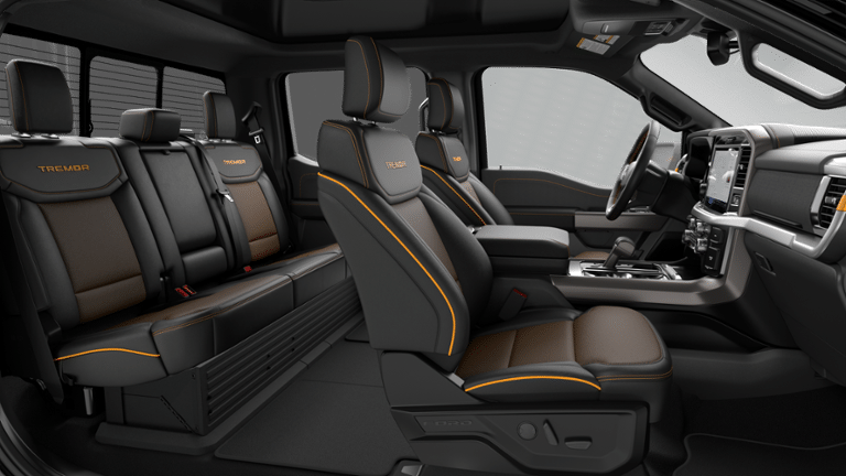 Equipment Group 402A High: 18" Alloy with Dark Matte Finish Wheels; Power-Adjustable Pedals with Memory; Electronic Locking with 3.73 Axle Ratio; Electronic 10-Speed Automatic Transmission; LED Taillamps; Unique Tremor Leather-Trimmed Seats; B&O Unleashed Sound System by Bang & Olufsen Radio; Front Axle with Torsen Differential; 2nd Row Heated Seats; Rain-Sensing Wipers; Modular Front Bumper and Carbon Black Rear Bumper; 2-Speed Automatic AWD with Hi-Lock Transfer Case; 275/70R18 All-Terrain Tires; Media Bin Door; Universal Garage Door Opener; Heated Steering Wheel; Power Glass Heated Sideview Mirrors Bed Utility Package: 4 Pickup Box Tie-Down Plates; 6" Extended Running Boards; LED Box Lighting; Pro Access Tailgate; Power Tailgate Mobile Office Package: Wireless Charging; Partitioned Lockable Rear Storage; Console Worksurface Tow/haul Package: Integrated Trailer Brake Controller Twin Panel Moonroof Head-Up Display Ford Connectivity Package (one-Time Purchase - 7 Years) Driver's Side SecuriCode Keyless-Entry Keypad **Equipment listed is based on original vehicle build and subject to change. Please confirm the accuracy of the included equipment by calling the dealer prior to purchase.**