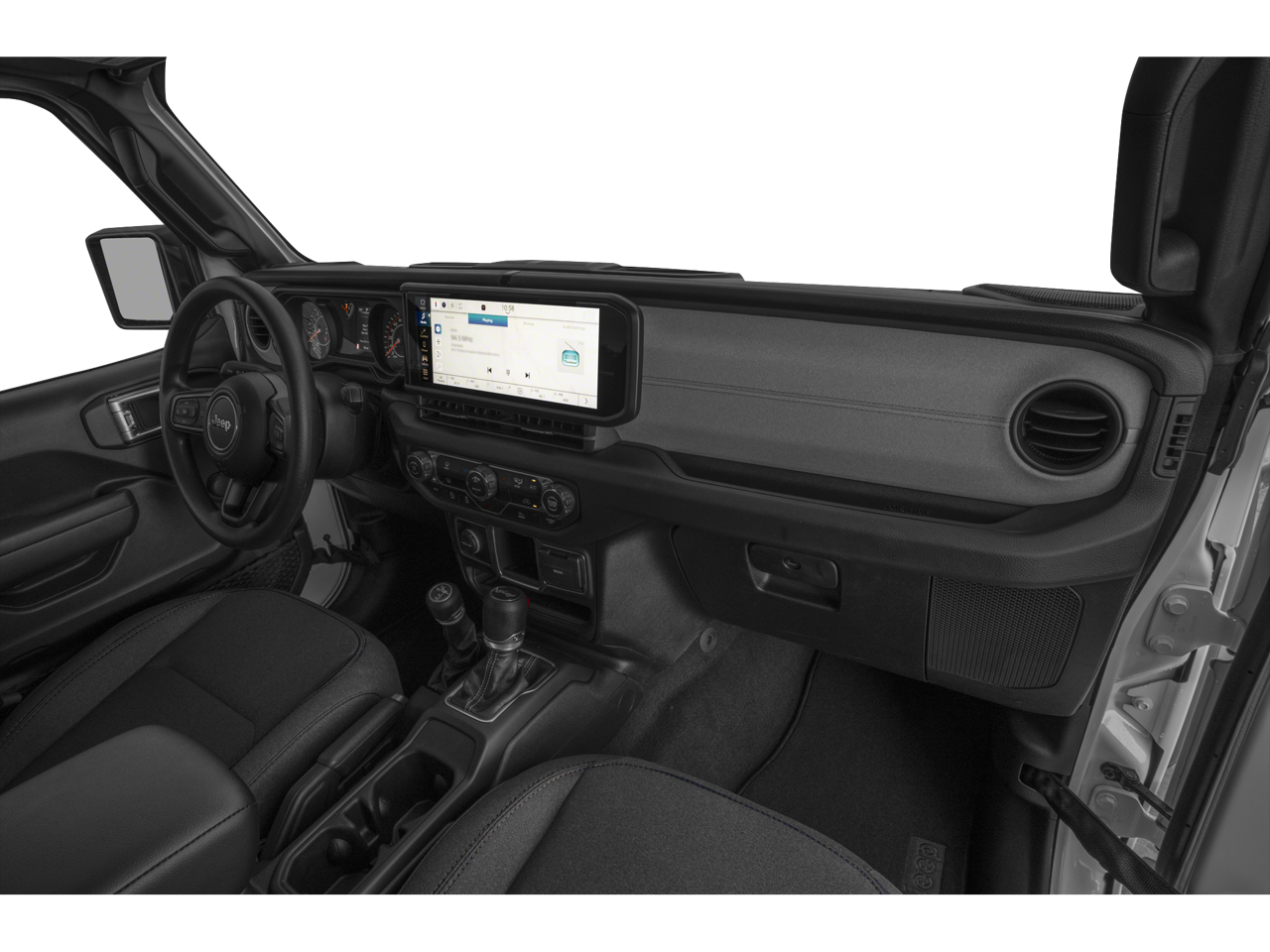 Convenience Group: Emergency/Assistance Call; 2-Door Passive Entry. Front Door Locks; Cluster 7.0" TFT Color Display; Universal Garage Door Opener; Heated Front Seats; Air Conditioning W/Auto Temp Control; Heated Steering Wheel; Air Filtering. Safety Group: Auto High Beam Headlamp Control; Blind Spot & Cross Path Detection; LED Taillamps; ParkSense Rear Park Assist System; Injection Molded Black Rear Bumper. Quick Order Package 23S Sport S: Advanced Brake Assist; Power Heated Mirrors; Enhanced Adaptive Cruise Control; Automatic Headlamps; Deep Tint Sunscreen Windows; Corning Gorilla Glass; Premium Wrapped Steering Wheel; Security Alarm; Sun Visors W/Illuminated Vanity Mirrors; Full Speed Forward Collision Warning Plus. LED Headlamp & Fog Lamp Group: Front LED Fog Lamps; LED Premium Reflector Headlamps. Alpine Premium Audio System. 17" X 7.5" Machined Wheels W/Black Pockets. Black Clearcoat. MOPAR Doors Off Mirror Kit. MOPAR All-Weather Floor Mats. Soft Top Window Storage Bag. **Equipment listed is based on original vehicle build and subject to change. Please confirm the accuracy of the included equipment by calling the dealer prior to purchase.**