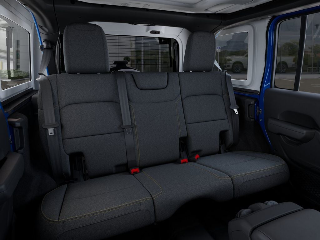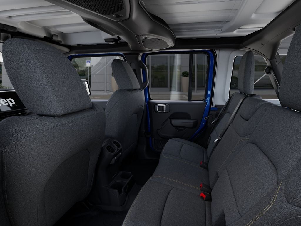Exterior styling reflects Jeep Wrangler's iconic design with durable build quality and trail-ready features included in the Off-Road Package. The interior balances rugged materials with user-friendly tech controls, making it ideal for weekend adventures or daily commuting.