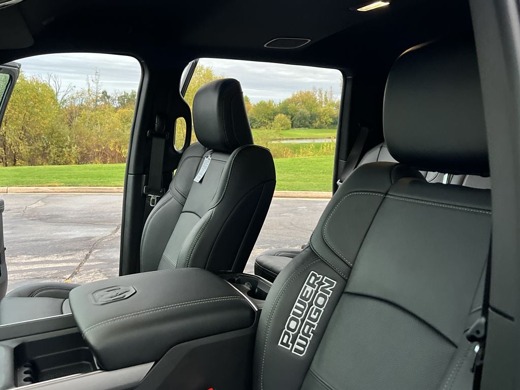Bed Convenience Group: MOPAR Spray in Bedliner; LED Bed Lighting. Quick Order Package 2UP Power Wagon: Power Wagon Instrument Panel Spec Plate; RAM Articulink Suspension; 17" X 8.0" Black Painted Aluminum Wheels; 17" Steel Spare Wheel; Front Disconnecting Stabilizer Bar; Instrument Cluster Theme 5 - Power Wagon; Tru-Lok Front and Rear Axles; Goodyear Brand Tires; 4.10 Axle Ratio; Black Wheel Center Hub; Raised Ride Height; LT285/70R17D OWL AT Tires. Power Wagon Level 1 Equipment Group: Rain Sensitive Windshield Wipers; Power Adjustable Pedals with Memory; Body Color Door Handles; Auto Power-Folding Mirrors; Overhead LED Lamps; Exterior Mirrors with Heating Element; Auto Dim Exterior Mirror; MOPAR Rock Rails with Step Pad; Mirror Running Lights; Black Exterior Mirrors; Power-Adjustable Convex Aux Mirrors; Premium Overhead Console; Forward and Reverse Utility Lights; 9 Alpine Speakers with Subwoofer; Power Heated Fold Telescopic Mirrors with Memory; Exterior Mirrors with Supplemental Signals; Front Electric Winch; Sport Performance Hood; Exterior Mirrors Courtesy Lamps; Leather Trimmed Bucket Seats; Front Door Locks 2-Door Passive Entry; LED Interior Lighting; Auto High Beam Headlamp Control; LED Dome Lamp with On/off Switch; Universal Garage Door Opener; Exterior Mirrors with Memory; Power Adjust Mirrors; Power Telescoping Mirrors; MOPAR Front and Rear Rubber Floor Mats; Auto Dim Exterior Passenger Mirror; Sun Visors with Illuminated Vanity Mirrors; Auto Adjust in Reverse Exterior Mirrors. Front Electric Winch. MOPAR Rock Rails with Step Pad. Sport Performance Hood. Center Stop Lamp with Cargo View Camera. Forged Blue Metallic. Forged Blue Metallic. MOPAR Front and Rear Rubber Floor Mats. MyFlexCare Service Plan. **Equipment listed is based on original vehicle build and subject to change. Please confirm the accuracy of the included equipment by calling the dealer prior to purchase.**