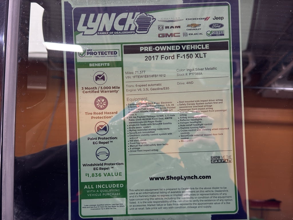 2017 Ford F-150 XLT 4WD — Burlington, WI. Get the best price on a rugged, reliable pickup ready for work or weekend adventure. This Ford F-150 features a powerful V6 3.5L engine that runs on Gasoline/E85, offering strong performance, impressive towing capability, and fuel flexibility. Four-wheel drive provides confidence in snow, rain, and off-road conditions across southeast Wisconsin.