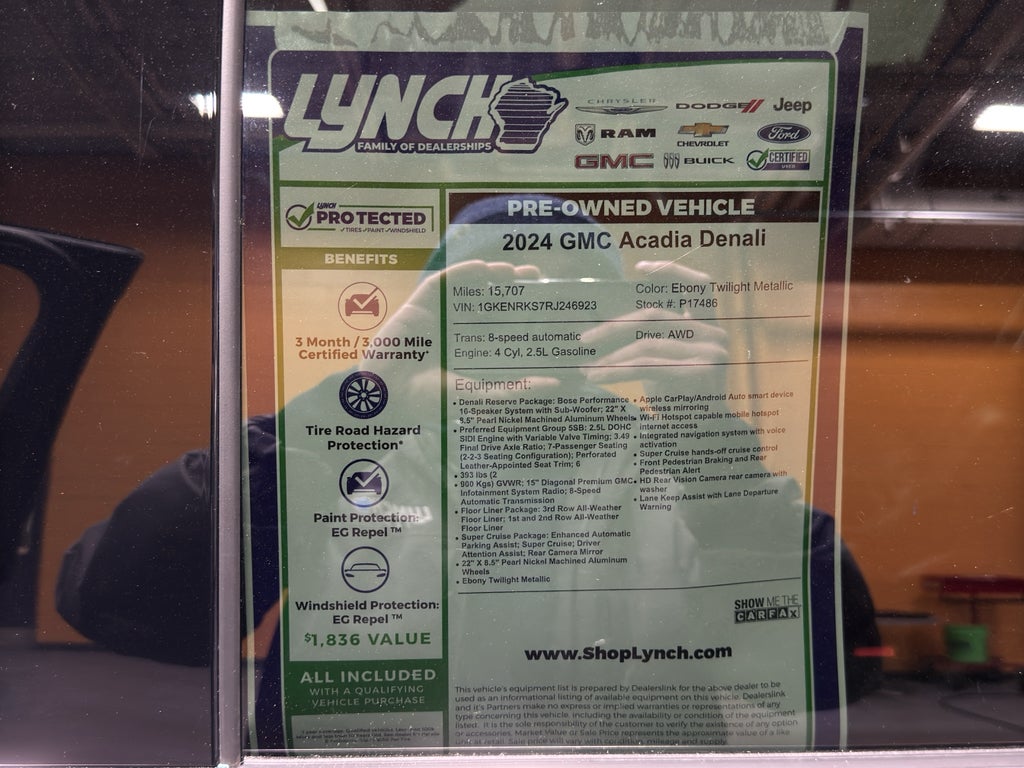 Located in Burlington, WI, this 2024 GMC Acadia Denali with AWD, a 2.5L 4-cylinder engine, and only 15,707 miles won't last long at this best-price offering. Schedule a test drive today.