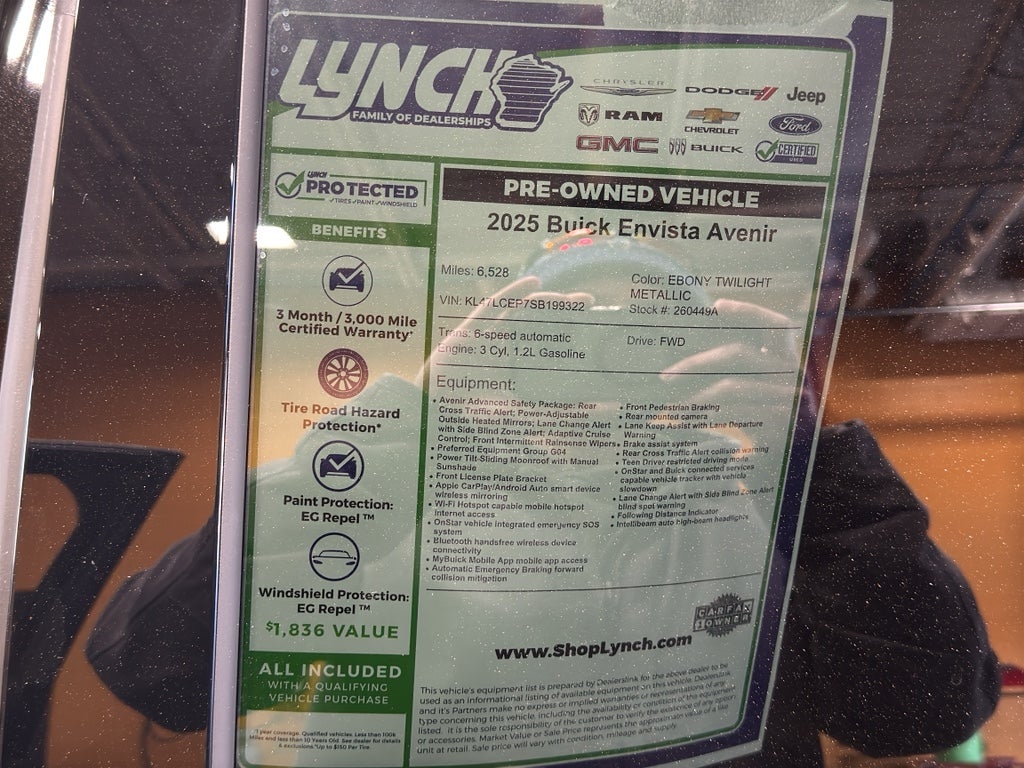 This model offers Android Auto for seamless smartphone integration. The leather seats in the vehicle are a must for buyers looking for comfort, durability, and style. It offers Automatic Climate Control for personalized comfort. The Buick Envista has auto-adjust speed for safe following. Keep your hands warm all winter with a heated steering wheel in this small suv . See what's behind you with the back up camera on this 2025 Buick Envista . Bluetooth® technology is built into the Buick Envista, keeping your hands on the steering wheel and your focus on the road. This vehicle is a certified CARFAX 1-owner. This 2025 Buick Envista has a clean CARFAX vehicle history report. The state of the art park assist system will guide you easily into any spot. It's Lane Departure Warning helps keep you in your lane. Apple CarPlay: Seamless smartphone integration for this Buick Envista - stay connected and entertained on the go!