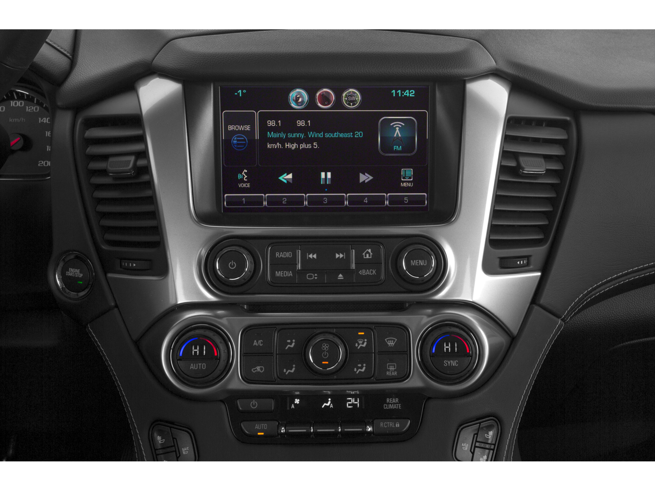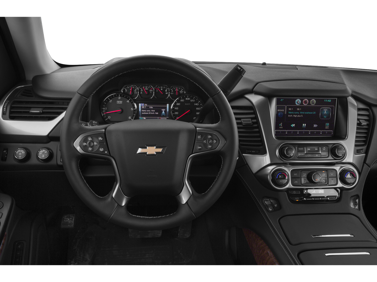 Sun. Entertainment and Destinations Package: Chevrolet MyLink Radio with Navigation/AM/FM Stereo; Rear Seat Blu-Ray/DVD Entertainment System; Power Sunroof. Max Trailering Package: 2-Speed Active Electronic Autotrac Transfer Case; 3.42 Rear Axle Ratio; Integrated Trailer Brake Controller. Preferred Equipment Group 1LZ: Memory Settings; Heated Leather Wrapped Steering Wheel; Forward Collision Alert; Perforated Leather-Appointed Seat Trim; 3rd Row 60/40 Power Fold Split-Bench; Front and Rear Parking Assist; Floor Console; Rear Cross-Traffic Alert; Fog Lamps; Driver Inboard and Front Passenger Airbags; Lane Departure Warning and Safety Alert Seat; Wireless Charging; Universal Home Remote; Heated 2nd Row Seats; Hands Free Power Liftgate; Front Heated Reclining Bucket Seats; Power-Folding Heated Outside Mirrors; Side Blind Zone Alert with Lane Change Alert; 5 12-Volt Auxiliary Power Outlets; Single-Speed Active Autotrac Transfer Case; Power Tilt and Telescoping Steering Column; Passive Entry System; Bose Centerpoint Premium 10-Speaker Surround Sound; Magnetic Ride Control Suspension Package; Auto-Dimming Inside Rearview Mirror; Power Adjustable Pedals; Keyless Start Switch; Power Release 2nd Row Bucket Seats; Heavy-Duty Rear Locking Differential. Rear Seat Blu-Ray/DVD Entertainment System. 22" Premium Painted Wheels with Chrome Inserts. Power Sunroof. **Equipment listed is based on original vehicle build and subject to change. Please confirm the accuracy of the included equipment by calling the dealer prior to purchase.**