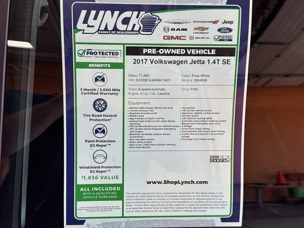 Located in Burlington, WI, this 2017 Volkswagen Jetta 1.4T SE is ready for test drives and inspection. Contact the dealership to schedule an appointment and see why this Volkswagen Jetta remains a popular pre-owned sedan for commuters, families, and anyone who values comfortable, connected driving.