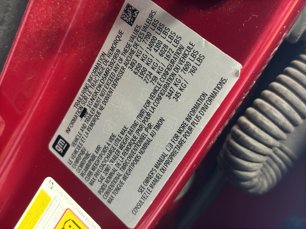Preferred Equipment Group 2Z7: Bright Front and Rear Door Sill Plates; Leather Seating Surfaces; Remote Start; 3.23 Rear Axle Ratio; Hill Descent Control; 20" X 9" Machined Aluminum Wheels; 5.3L EcoTec3 V8 Engine; Floor Console with Storage Area; Black Tubular Assist Steps; LED Daytime Running Lamps; Driver and Front Outboard Passenger Airbags; 10-Way Power Driver and Passenger Seat Adjusters; Memory Settings For Driver; Heated Driver and Front Passenger Seats; Premium Smooth Ride Suspension; Front Bucket Seats; Electronic 10-Speed Automatic Transmission with Overdrive; Universal Home Remote; Colour-Keyed Carpeting Floor Covering; Front Skid Plate; Front High-Approach Angle Fascia; Hands-Free Rear Power Programmable Liftgate; Bose 9-Speaker Stereo Audio System Feature; 2-Speed Active Electronic Autotrac Transfer Case; 1st and 2nd Row Colour-Keye