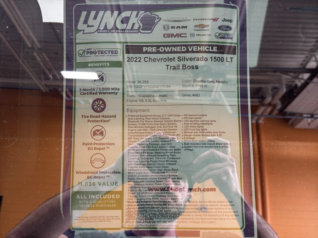 Don't miss the chance to own a low-mileage Trail Boss equipped with the powerful V8, four-wheel drive capability, and a suite of comfort and connectivity features. Schedule a test drive in Burlington, WI, and experience the capability and comfort of this striking 2022 Chevrolet Silverado 1500 LT Trail Boss firsthand.