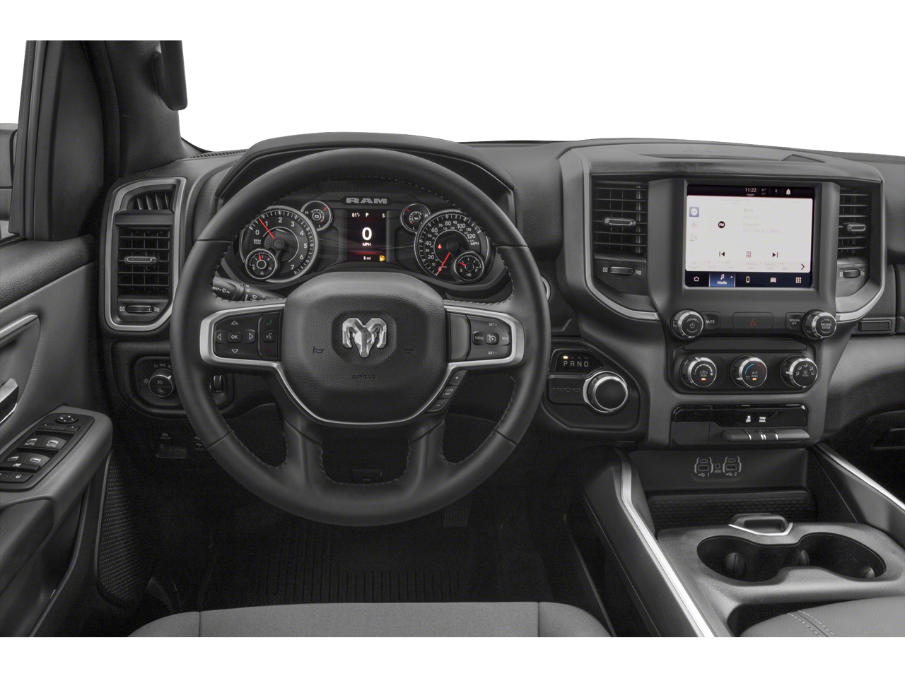 Quick Order Package 23Z Big Horn: Big Horn Badge. Big Horn Level 2 Equipment Group: Google Android Auto; SiriusXM Radio Service; Bluetooth® Handsfree Phone and Audio; USB Host Flip; Rear Window Defroster; Integrated Center Stack Radio; ParkSense Front/rear Park Assist with Stop; Rear View Auto Dim Mirror; Power Adjustable Pedals; For More Info. Call 800-643-2112; Rear Power Sliding Window; Rear Dome with On/off Switch Lamp; Glove Box Lamp; 115V Auxiliary Rear Power Outlet; GPS Antenna Input; Media Hub with 2 Charge Only USBs; Exterior Mirrors with Heating Element; Power 8-Way Driver Seat; Auto Dim Exterior Driver Mirror; Heated Front Seats; Uconnect 5 W Radio with 8.4" Display; Heated Steering Wheel; 8.4" Touchscreen Display; Black Exterior Mirrors; Class IV Receiver Hitch; Security Alarm; Black Premium Power Mirrors; Apple CarPlay; Big Horn Instrument Panel Badge; Remote Start System; SiriusXM Satellite Radio; Exterior Mirrors with Supplemental Signals; Exterior Mirrors Courtesy Lamps; Air Conditioning ATC with Dual Zone Control; 115V Auxiliary Power Outlet; Cluster 7.0" TFT Color Display; Universal Garage Door Opener; Power-Folding Mirrors; Convex Wide-Angle Mirror Insert; Sun Visors with Illuminated Vanity Mirrors; Power 2-Way Driver Lumbar Adjust. Night Edition: 275/55R20 OWL All Season Tires; Deluxe Cloth Bucket Seats; Accent Color Premium Power Mirrors; Black Headlamp Bezels; Black Exterior Truck Badging; Anti-Spin Differential Rear Axle; 20" X 9.0" Premium Paint/polished Wheels; Grille Surround 1 Black Texture 2 Black; Black Interior Accents; Dual Exhaust with Black Tips; Body Color Front Bumper; Body Color Rear Bumper with Step Pads; Black Painted Exterior Mirrors Caps. Deluxe Cloth Bucket Seats. Anti-Spin Differential Rear Axle. ParkSense Front/rear Park Assist with Stop. 115V Auxiliary Power Outlet. Granite Crystal Met CC. Remote Start System. MOPAR Front and Rear Rubber Floor Mats. Cluster 7.0" TFT Color Display. **Equipment listed is based on original vehicle build and subject to change. Please confirm the accuracy of the included equipment by calling the dealer prior to purchase.**