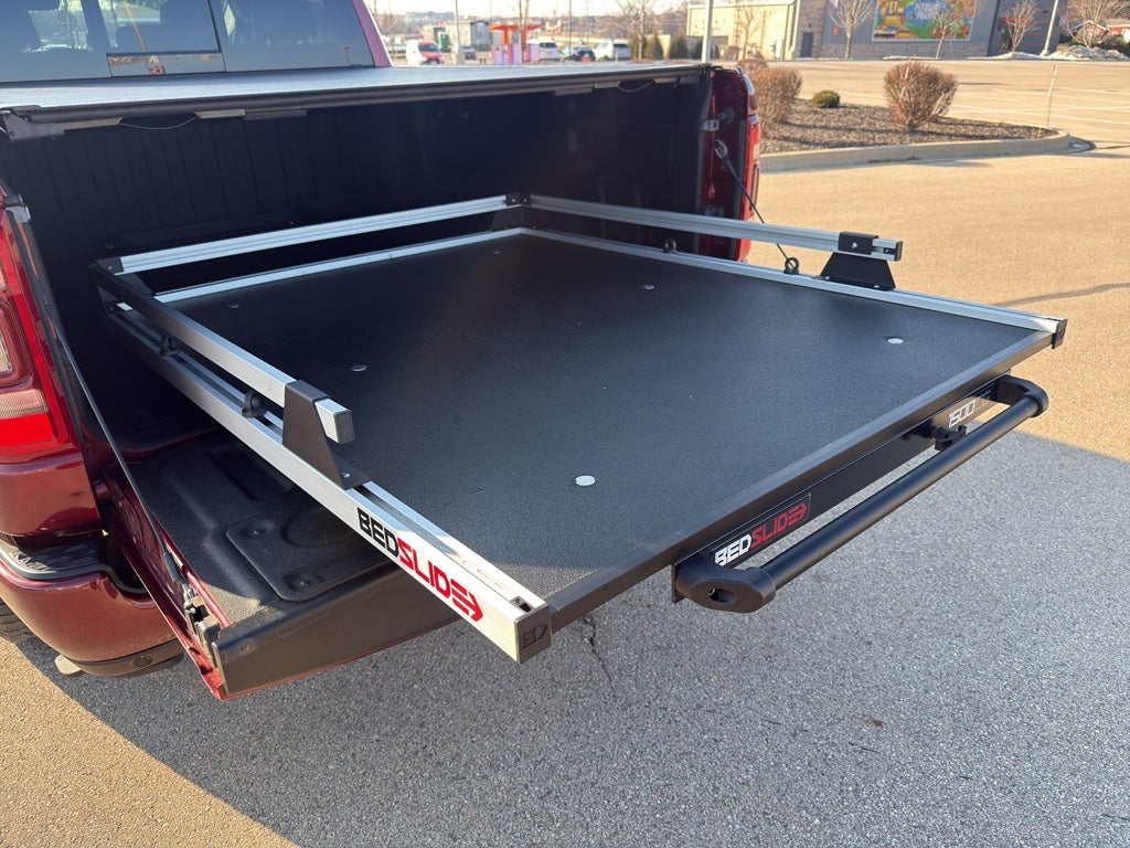 Quick Order Package 27M Limited Bed Utility Group: MOPAR Deployable Bed Step; MOPAR 4 Adjustable Cargo Tie-Down Hooks Body Color Bumper Group: Body Color Front Bumper; Body Color Rear Bumper with Step Pads Dual-Pane Panoramic Sunroof Anti-Spin Differential Rear Axle 33 Gallon Fuel Tank Trailer Brake Control Delmonico Red Pearlcoat **Equipment listed is based on original vehicle build and subject to change. Please confirm
