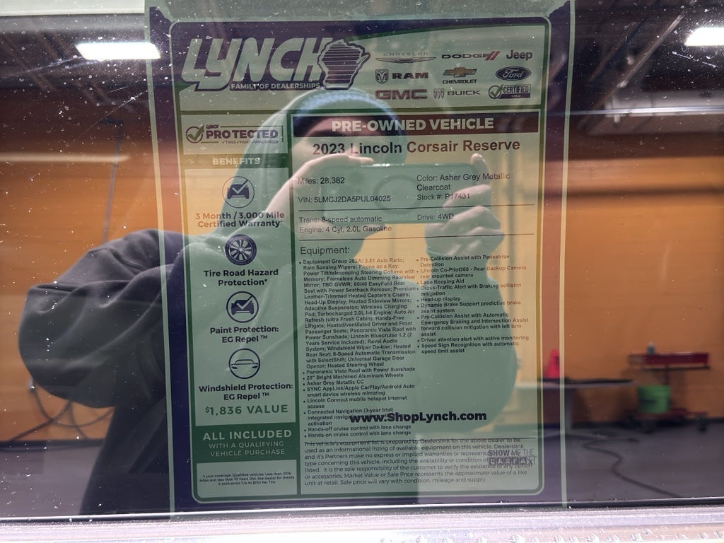 Located in Burlington WI, this Lincoln Corsair is ready for test drives and inspection. Low mileage, top safety and convenience features, and the best price make this 2023 Lincoln Corsair Reserve a standout option if you want luxury, technology, and peace of mind in a compact SUV. Schedule your appointment today.
