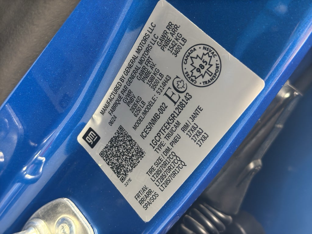 ZR2 Convenience Package III: Perforated Leather-Appointed Seat Trim; Driver Memory Settings; Heated Steering Wheel; Rear Centre Armrest; Wireless Charging; Driver Seatback Map Pocket; Driver and Front Passenger Ventilated Seats. Safety Package: Blind Zone Steering Assist with Trailering; Rear Cross Traffic Braking; Rear Park Assist. Technology Package: HD Surround Vision; Rear Pedestrian Alert; Adaptive Cruise Control. Preferred Equipment Group 4ZR: 2. 835 Kgs (6. 250 Lbs) GVWR; 17" X 8" Graphite and Oxide Gold Aluminum Wheels; LT285/70R17 BW Tires; 3.42 Re
