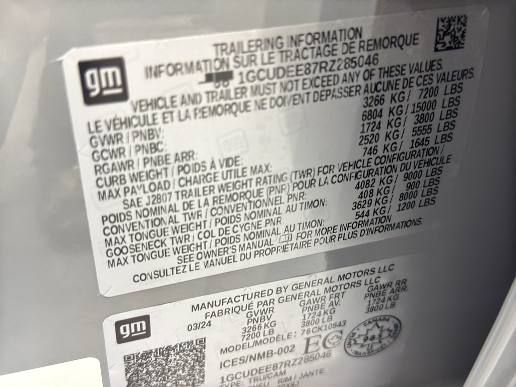 Convenience Package II: Premium Bose 7-Speaker Sound System; Power Sliding Rear Window with Rear Defogger; In-Vehicle Trailering System App; Universal Home Remote; Integrated Trailer Brake Controller; Hitch Guidance with Hitch View. Leather Package: Leather-Appointed Front Seat Trim; Up-Level Rear Seat with Storage Package. True North Edition Plus. Z71 Off-Road and Protection Package: All-Weather Floor Liner. Z71 Off-Road Package: 2-Speed Transfer Case; Hill Descent Control; Dual Exhaust with Polished Outlets; Off-Road Suspension; Skid Plates; Heavy-Duty Air Filter. Preferred Equipment Group 1SP: HD Rear Vision Camera; LED Cargo Area Lighting; Rear 60/40 Folding Bench Seat (folds Up); SiriusXM with 360L; Bluetooth® For Phone; Electrical Steering Column Lock; Trailering Package; Standard Tailgate; Front LED Fog Lamps; Steering Wheel Audio Controls; Colour-Keyed Carpeting Floor C