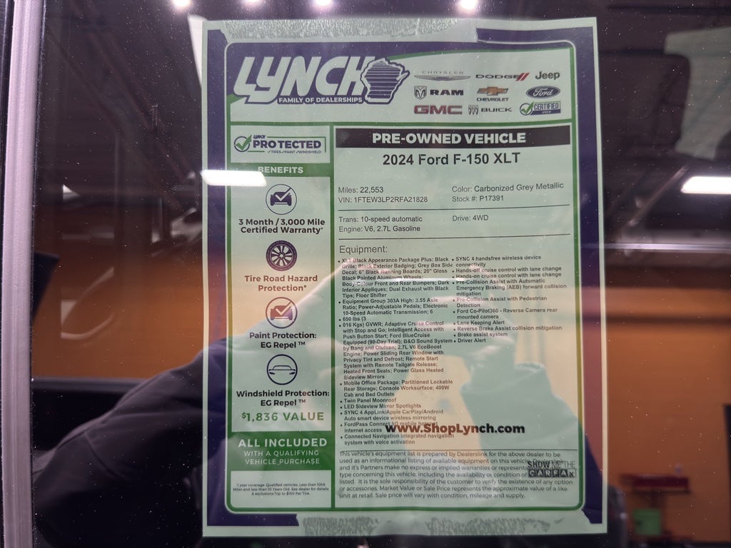 Ready for work, play, and everything in between — this 2024 Ford F-150 XLT is the ultimate blend of capability and comfort. Located in Burlington, WI, this 4WD powerhouse features a fuel-efficient V6 2.7L gasoline engine and only 22,553 miles, offering exceptional value with low mileage and the best price in the area. Whether you're towing, hauling, or cruising around town, the Ford F-150 XLT delivers confident performance and rugged reliability.